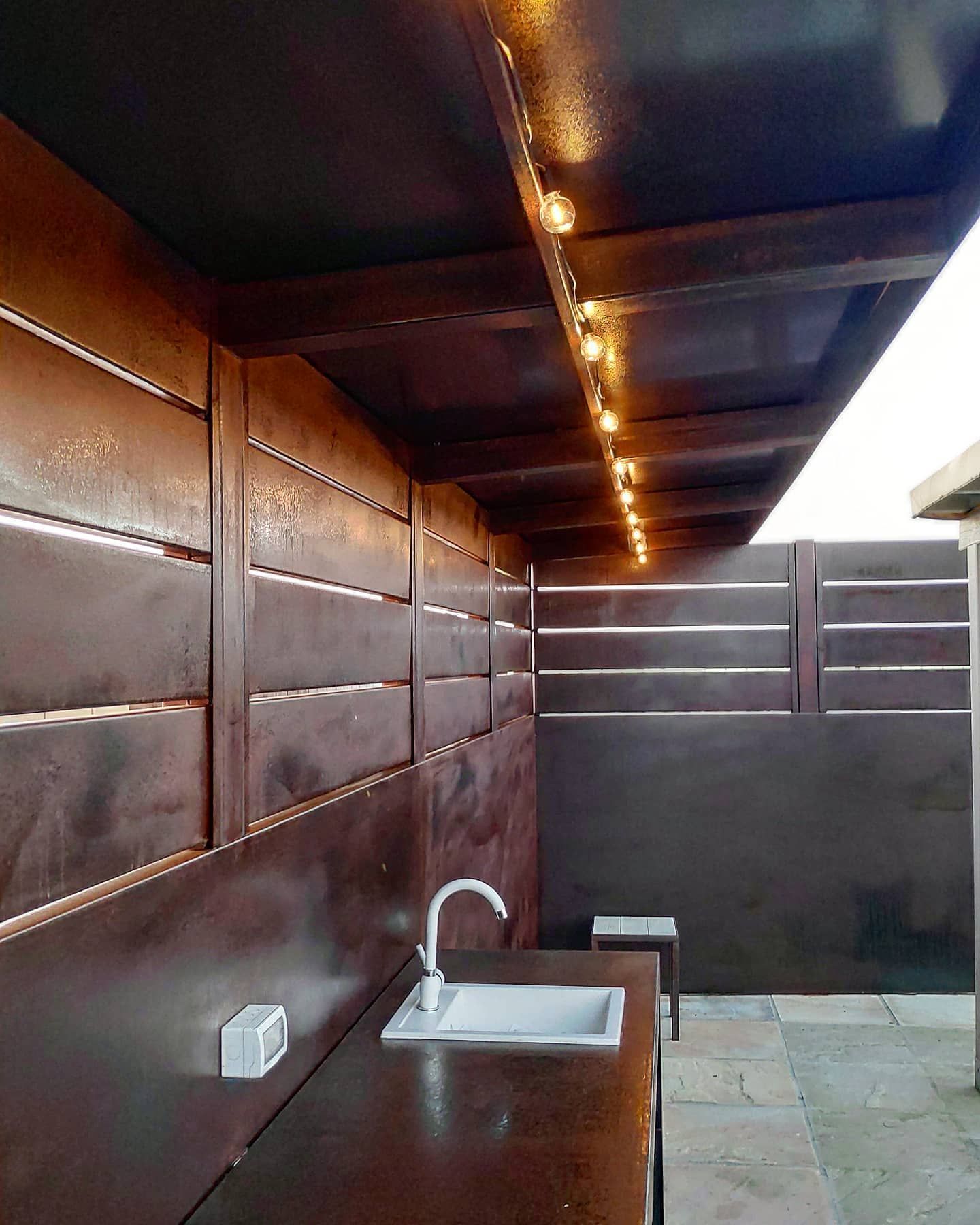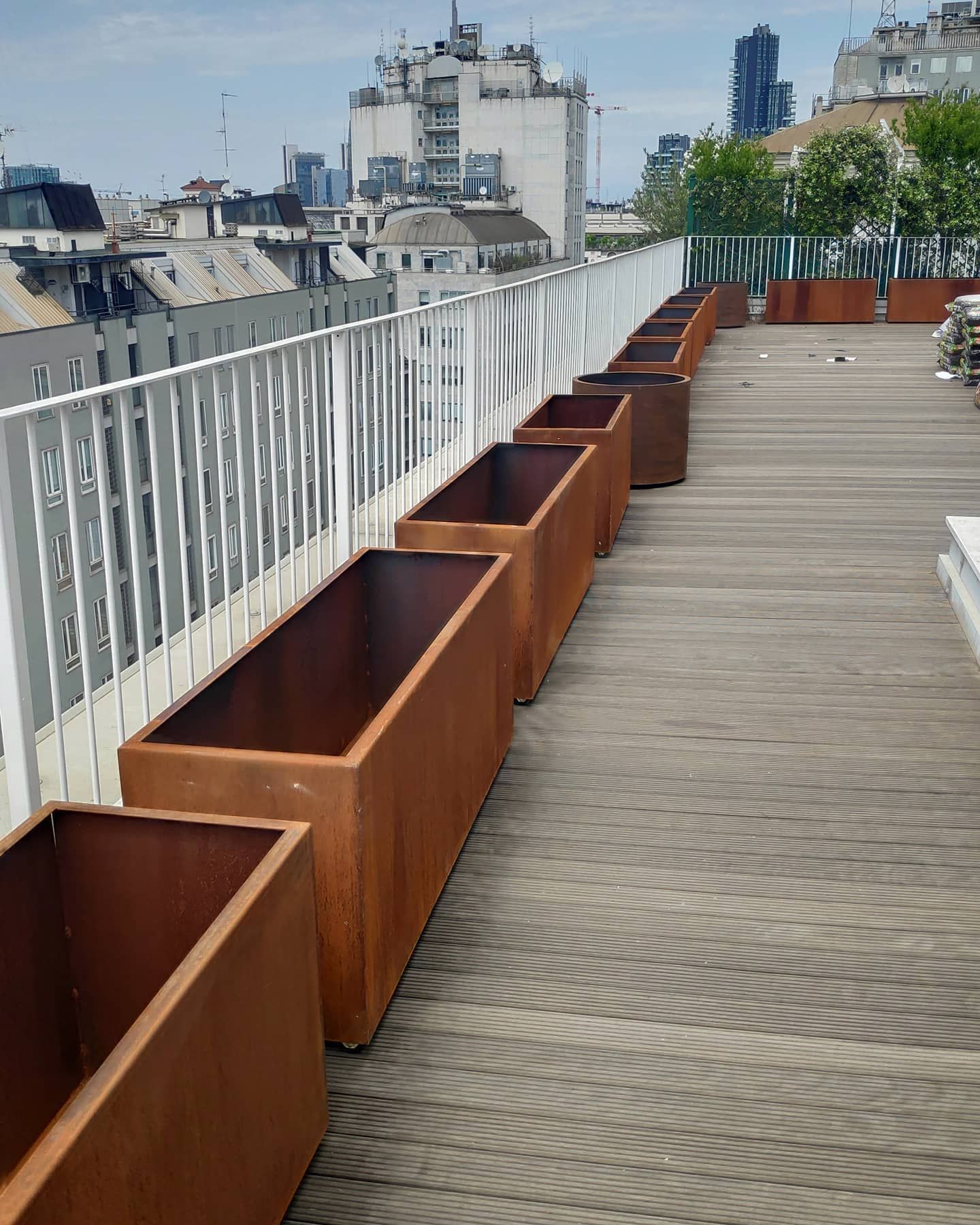 Gli elementi di protezione come parapetti, balaustre, ringhiere e corrimano, possono essere realizzati in ferro, acciaio, cortén, o vetro, con finiture grezze, zincate o verniciate.